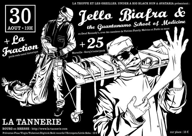 Nous vous proposons un "aller/retour festif" en bus pour le concert de "Jello Biafra & The Guantanamo School of Medecine" accompagnés par "La Fraction" et "25" à La Tannerie (Bourg en Bresse). Le bus partira à 17h00 (précise) de Chavanelle et rentrera à Saint-Etienne après le concert.