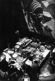 bourdonnement d'hélices, clapotis de cymbales, brouillage CB, bataille