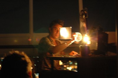 Xavier Quérel instrumentalise le projecteur 16mm et mets les mains dans la pellicule.